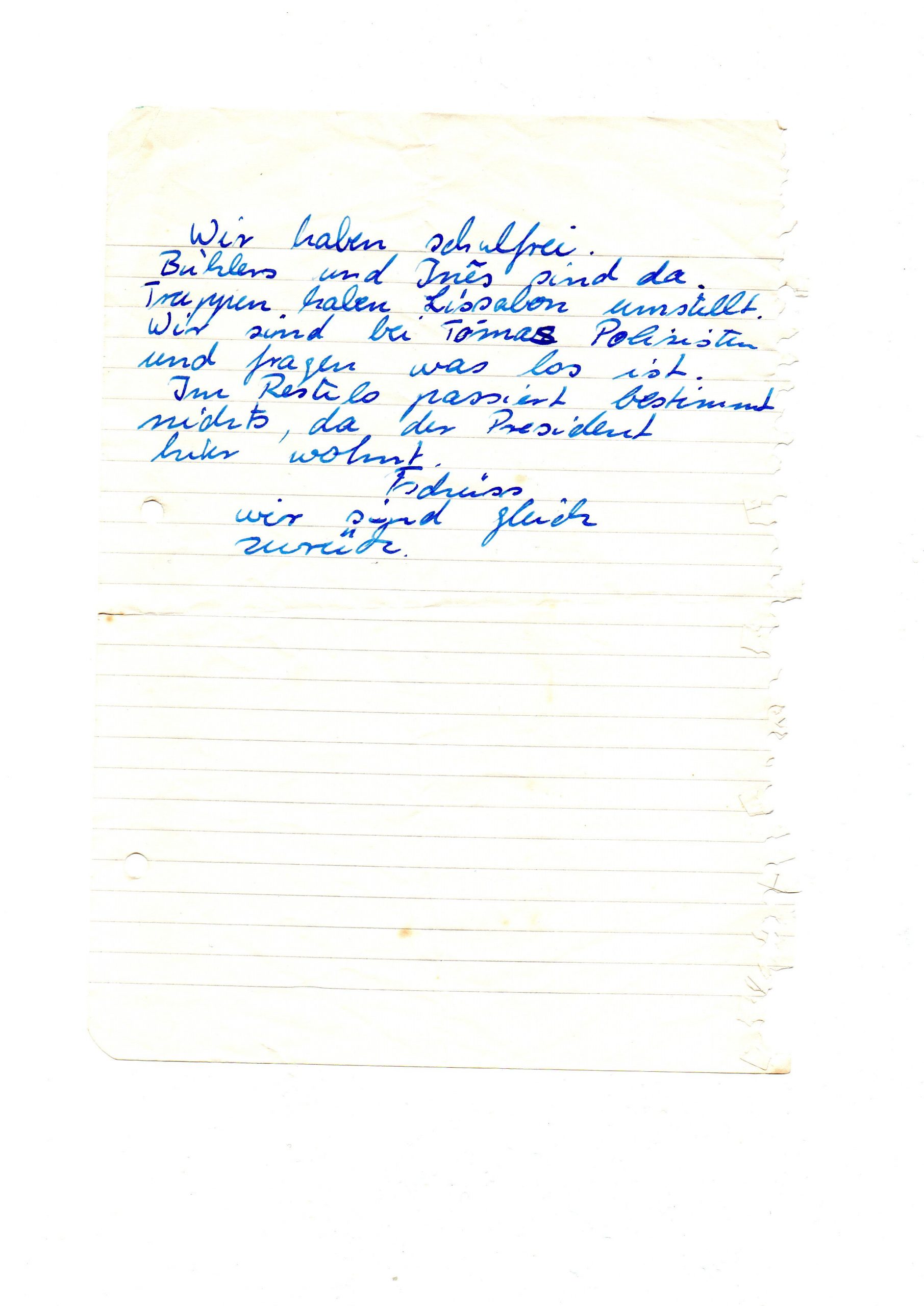 Nachricht an die Eltern am Morgen des 25.04.1974©kf_privat